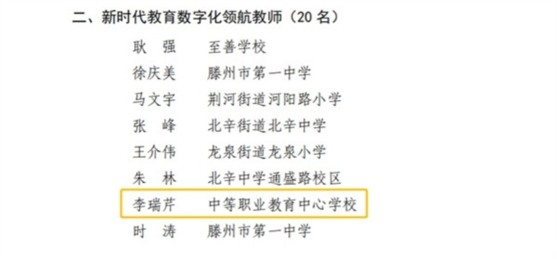 为深入实施国家教育数字化战略行动,持续推进教育数字化转型,加快培养一批适应智慧教育需要的高素质专业化创新型教师队伍,滕州市开展了首批新时代教育数字化领航校长、领航教师评选活动,滕州市中等职业教育中...
